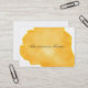 Watercolor swish of medium orange across the front with black text for a business name. Back is white with black text