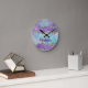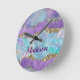 Stylish mermaid glittery Purple turquoise monogram Round Clock