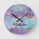 Easily personalise this trendy, chic bling Luxury Wall Clock design featuring elegant girly mermaid abstract design in purple, pink, aqua, turquoise and faux silver gold glitter design. This makes the perfect sweet 16 birthday, wedding, bridal shower, anniversary, baby shower or bachelorette party gift for someone that loves glam luxury and chic styles. Show off your personal style and upgrade your wall decor with this glamourous personalised trendy wall clock.