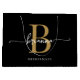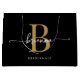 Stylish Minimal Black Gold Monogram Girly Script Large Gift Bag
