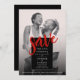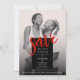 Make your wedding announcement memorable and stylish with this chic save the date wedding card featuring a minimalist red, black, and white design, complemented by a striking red and white script. With a lovely photo of the happy couple on the front and a simple black background on the back, it's the perfect canvas for customisation. Personalise the text and photo to create your own modern elegant save the date card, available in both print and digital download formats.