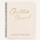 This stylish blank gratitude journal has a modern minimalist style with gold text on a creamy white background. Personalise it with your name. Great gift idea.