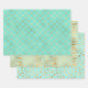 A stylish set of gift wrapping paper, this item features a sheet of mermaid print, snake print and golden dots on a mint background. Chic and stylish, add to your shopping cart today!
