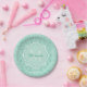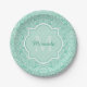 Stylish Mint Green Damask Monogram With Name Paper Plate