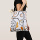 This Halloween tote bag features an abstract and whimsical design with a smiling jack-o'-lantern surrounded by swirling, flowing lines. The jack-o'-lantern's face is drawn in a simple yet cheerful style, while the surrounding swirls and curves create a dynamic sense of motion, adding an artistic flair to the composition. The soft autumn hues of orange and gold blend seamlessly with the black linework, providing a playful contrast against the white background. The overall design feels both festive and modern, making it a stylish accessory for Halloween events, shopping, or everyday use during the spooky season.