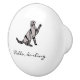 Stylish Modern Black Graphic Cat and Script Ceramic Knob