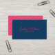 This modern business card with a blue stripes pattern front and a pink stripes pattern back. It's ideal for consultants, writers, interior designers, freelancers, photographers, etc or just about anyone who wants a stylish colourful modern design.