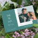 This simple modern design features your personalised Save The Date information and favourite photo on a teal background with a white accent. Personalised by editing the text in the text boxes provided #savethedate #wedding #weddingstationery #personalised #personalizedstationery #weddinginspo #customwedding