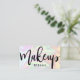 Gorgeous makeup business card design featuring colorful faux holographic texture and elegant calligraphy font.