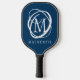 Stylish personalised custom colour pickleball paddle featuring a decorative monogram and name shown in blue and white colours for the pickler or pickleball enthusiast. COLOR CHANGES: Change the text or background colours or add a styled graphics background by clicking on the EDIT tab in the PERSONALIZE section to create your own custom design. PADDLE OPTIONS: Choose from Black, Tan or White edging and grip colours on the ordering page. ASSISTANCE: For help with design modification or personalisation, colour change, transferring the design to another product or if you would like coordinating items, contact the designer BEFORE ORDERING via the Zazzle Chat MESSAGE tab below or email makeitaboutyoustore@gmail.com.