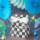 A great gift for any musician or music lover, this cool design features a modern and stylish black and white check squares pattern with various musical notes and musical instruments in alternating colours. It includes pianos, trumpets, drums and saxophones with music notes and treble clefs.