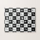 A great gift for any musician or music lover, this cool design features a modern and stylish black and white check squares pattern with various musical notes and musical instruments in alternating colors. It includes pianos, trumpets, drums and saxophones with music notes and treble clefs.
