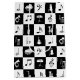 A great gift for any musician or music lover, this cool design features a modern and stylish black and white check squares pattern with various musical notes and musical instruments in alternating colours. It includes pianos, trumpets, drums and saxophones with music notes and treble clefs.