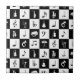 A great gift for any musician or music lover, this cool design features a modern and stylish black and white check squares pattern with various musical notes and musical instruments in alternating colours. It includes pianos, trumpets, drums and saxophones with music notes and treble clefs.