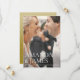 This stylish, modern photo wedding save the date card features a clean, simple design and a base of gradated gold on back. You'll notice that the font size of the month on back is larger than the numbers that follow it. If you enter your month in capital letters, you'll get this look. But if you'd like the month to appear as more similar in size to the rest of your date, use lower case letters for the month, as our settings will automatically change it to capital letters of a size similar to the rest of the date. You might prefer this look, so please experiment with both too see which suits your style. Use the design tools to customise this card and make it uniquely yours with your favourite photo!
