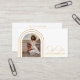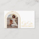 Stylish Modern Script Photo QR Code Photography Photographer Business Cards features a stylish and elegant golden script with your favourite photo inside golden arches with your business details and custom business website QR code on the reverse. On the reverse is your personalised contact details. Designed by © Evco Studio www.zazzle.com/store/evcostudio