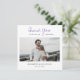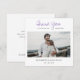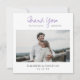 This simply stylish wedding thank you card features words of thanks above your favourite photo and your first names and date below it. We've chosen a warm, modern script and an elegant shade of royal purple for 'Thank You' and added 'for sharing our special day' underneath, with that line separated by the the loop of the 'Y', enhancing its relaxed, intimate charm. This message makes this card particularly well suited to expressing your thanks specifically to those who were able to attend your wedding party. You can edit it to express a more general message of thanks, but the nature of the design might limit your options as far as appearance goes, depending on how long your desired message is and how the words can be arranged with the 'Thank You' above them. The text is a very dark grey that is in fact mostly black. You can of course change this to any colour that suits your style and your day, be it true black or another hue. You can also choose a different font for any or all of the text. You might even want to change the thank you wording or other text to something completely different. We've chosen a transparent background, which lets the colour of the card simply serve as the base tone, but you can choose a colour instead. Similarly, on the back we've used the same very dark grey tone on a transparent base, and we've put some placeholder text there for you to delete and replace with your own message, with or without your names, if you want to sign by hand when you get the cards. But you might also simply choose to delete our placeholder text and leave the back entirely blank so that you can write a message by hand on each card and sign your names. In any case please do remember that there's placeholder text on the back as well and to delete all of our sample/placeholder text on both sides of the card! Use the intuitive design tools, your favourite photo and your inspiration to make this chic modern wedding thank you card uniquely yours!