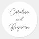 Stylish Modern Script Wedding Names Classic Round Sticker with White Background