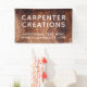 Stylish Modern Wooden Carpentry Construction Business Banner Sign features a stylish wooden furniture pattern background with your company name, website or custom text. Personalise by editing the text in the text box provided. Designed by ©Evco Studio www.zazzle.com/studio/evcostudio