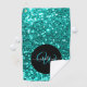 A golf towel with a classic and elegant monogram in aqua on a stylish black circle together with faux aqua glitter.