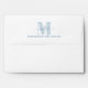 This design features a modern monogram simple return address, with botanical pale pink floral roses, a minimalist minimal clean initial name, with a monogrammed back flap trendy stylish, and great for a family with whimsical typography font design, elegant simplistic script text, a clean contemporary modern design, a great modern school office home, simple light pale blue style, a stylish simple stationery design, a custom customise personalised envelope