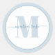 Stylish Monogram Blue Simple Minimalist Custom Classic Round Sticker