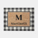 Stylish Monogram Faux Coir Buffalo Plaid Design Doormat
