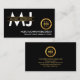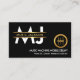 An all black cover is accentuated by a placard with gold borders near the top of the card. Here lies your prestigious name and two white monogram name initials. Towards the right side of the card is a faux gold equalizer logo you can use alongside the business name and contact details near the base.