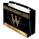 Stylish Monogram Initial Script Black Gold Sriped Large Gift Bag