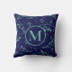 Stylish monogram teal green blue berry pattern cushion