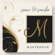 Elegant ecru, black and gold abstract floral design with classy, contemporary monogram initial -- Customise the names of the Bride and Groom to create your own truly unique and personalised gift that the happy newlyweds will treasure forever. Also makes a great gift for happily married 50th, 40th, 60th, 30th and 25th Anniversary couples.