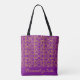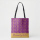 Stylish monogrammed Gold and purple damask swirl Tote Bag