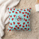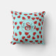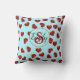 stylish monogrammed Red heart pattern on blue teal Cushion