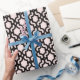 Stylish Moroccan Black Quatrefoil Lattice Pattern Wrapping Paper