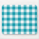 A stylish Mousepad with a teal and white check gingham pattern.