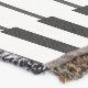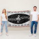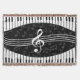 A stylish musical design in grey, black and white with a large treble clef in the centre with curved piano keys creating a border at the top and bottom of the design with a subtle pattern of grey musical notes in the background. An eye-catching music gift for the pianist, music lover or musician.
