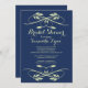 Stylish Navy Blue Leaf Flourish Bridal Shower Invitation