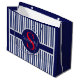 Elegant blue red striped initial monogram gift bag. Beautiful seamless toile de jouy pattern Blue on white background.Toile prints are an all time rage at the moment, this is an elegant and ornate vintage toile de jouy featuring exotic damask pattern, a fun style that is currently trending for home decor, clothes, mobile and Ipad cases, invitations and much more. The design is classic and timeless with stunning colour. You can change all text colours and fonts, click to customise further underneath the text customisation area this will take you into the design tool. A unique girly gift for birthday, holidays and any special occasion. Whether for valentines day, Christmas or as a gift in general it makes a great gift idea