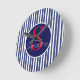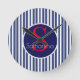 Stylish navy blue red striped initial monogram round clock