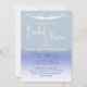 This bridal shower invitation design features a pastel blue ombre background with darker blue and white text. Personalise the text fields, remove any text or click customise to select a typeface style, size, and colour you like.