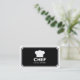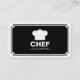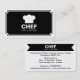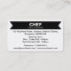 A stylish business card template designed for a cafe, restaurant or coffee shop in mind. The card has a large framed panel on the front containing a generic chef's hat logo/symbol with the company name and type of business beneath. The reverse side of the card has a strait ribbon style header with the company name and business type repeated in the header. The lower section has the address at the top with opening times in the centre, with telephone number beneath and the email and website addresses at the bottom. This template allows plenty of space for longer names making it easy to customise with your details, but can also be additionally customised.