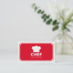A stylish business card template designed for a cafe, restaurant or coffee shop in mind. The card has a large framed panel on the front containing a generic chef's hat logo/symbol with the company name and type of business beneath. The reverse side of the card has a strait ribbon style header with the company name and business type repeated in the header. The lower section has the address at the top with opening times in the centre, with telephone number beneath and the email and website addresses at the bottom. This template allows plenty of space for longer names making it easy to customise with your details, but can also be additionally customised.