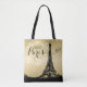 Stylish Paris Eiffel Tower Faux Gold Monogrammed Tote Bag