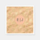 Beautiful and stylish paper party napkin features stencil style gold dahlias floral pattern on peach fuzz background. Centre circle to add couples monogram/ initials in gold font on brown background