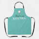 Personalised apron for all the chef's out there, a perfect gift for men and women, with a turquoise background, a chef hat, spoon and knife, with text that reads 'STEPHANIES KITCHEN'. Ideal for BBQ or in the home cooking! easily personalised with your name this apron will make a fab gift for christmas, birthdays, or special occassions.