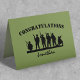 A simple military passing out greeting card featuring, the word "congratulations", soldiers in silhouette and the name of the soldier.