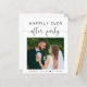 Budget-friendly elopement or private wedding announcement and wedding reception invitation. The front features your wedding day photo, "Happily Ever After Party" in a mix of simple typography and a stylish script with swashes and your names and wedding date joined together with a heart. On the back, personalise your message and reception invitation details and add your names in a signature-like script.