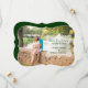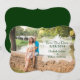 Lovely bracket shaped wedding save the date announcement, with the whole background taken up by your custom photograph. A semi transparent decorative text area, on the right side of the card, has green custom text ready to personalise. Great way to announce your up coming wedding plans.
