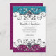 Glitzy fancy glitter wedding invitations. Design features pink and teal turquoise coloured faux glitter design with ornamental silver swirls and gemstone photo embellishment . Find matching items in our full wedding suite featuring this elegant pink glitter design.