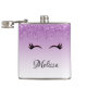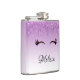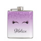 A flask with a trendy stylish design. The background is a purple gradient colour with an image of fake sparkling glitter dripping down from the top. A pair of girly cute eyelashes underneath the glitter image.